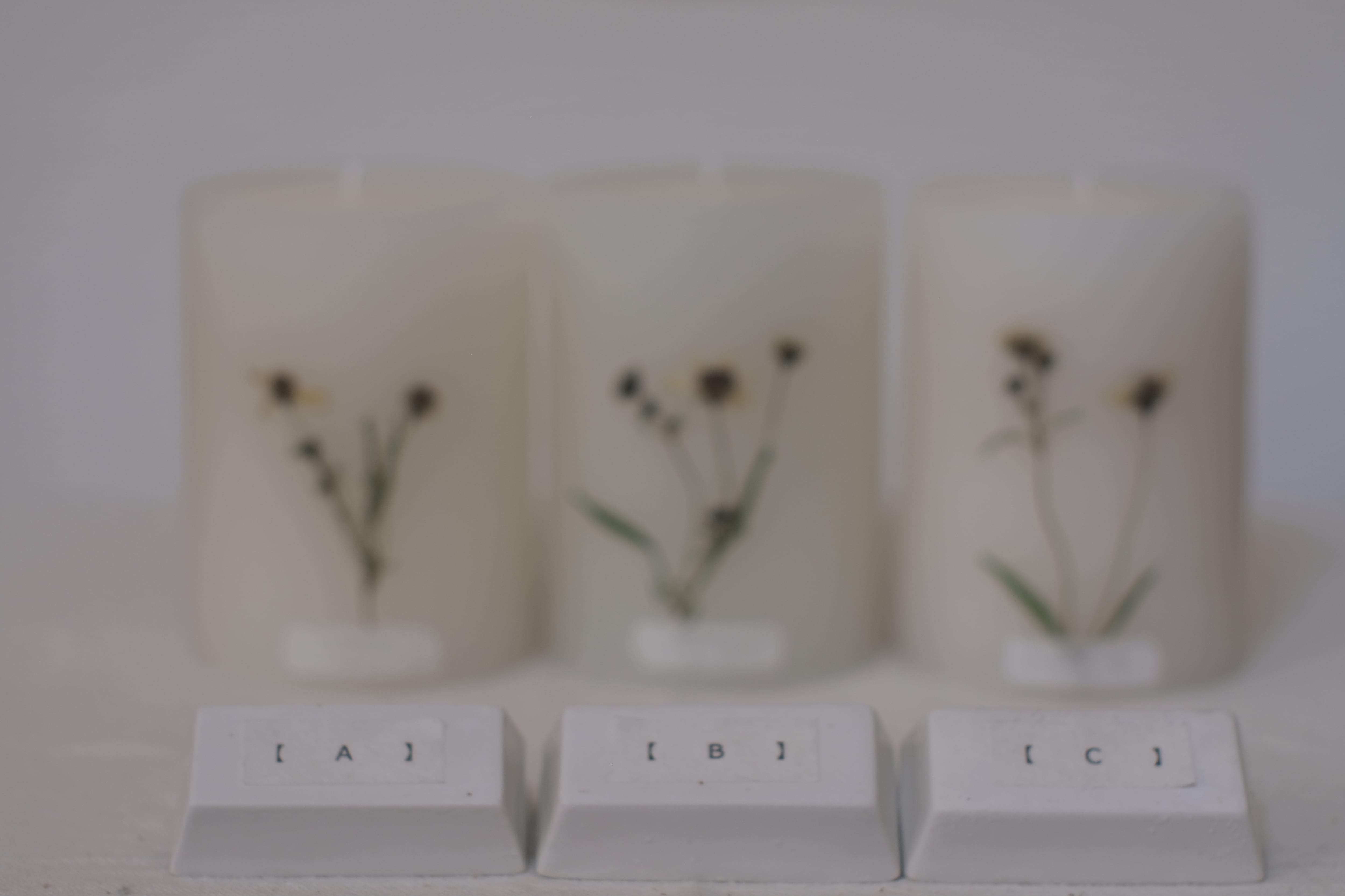 ボタニカルキャンドルは2層の造りになっており、燃焼部となる中心層にはソイワックスを使用しております。