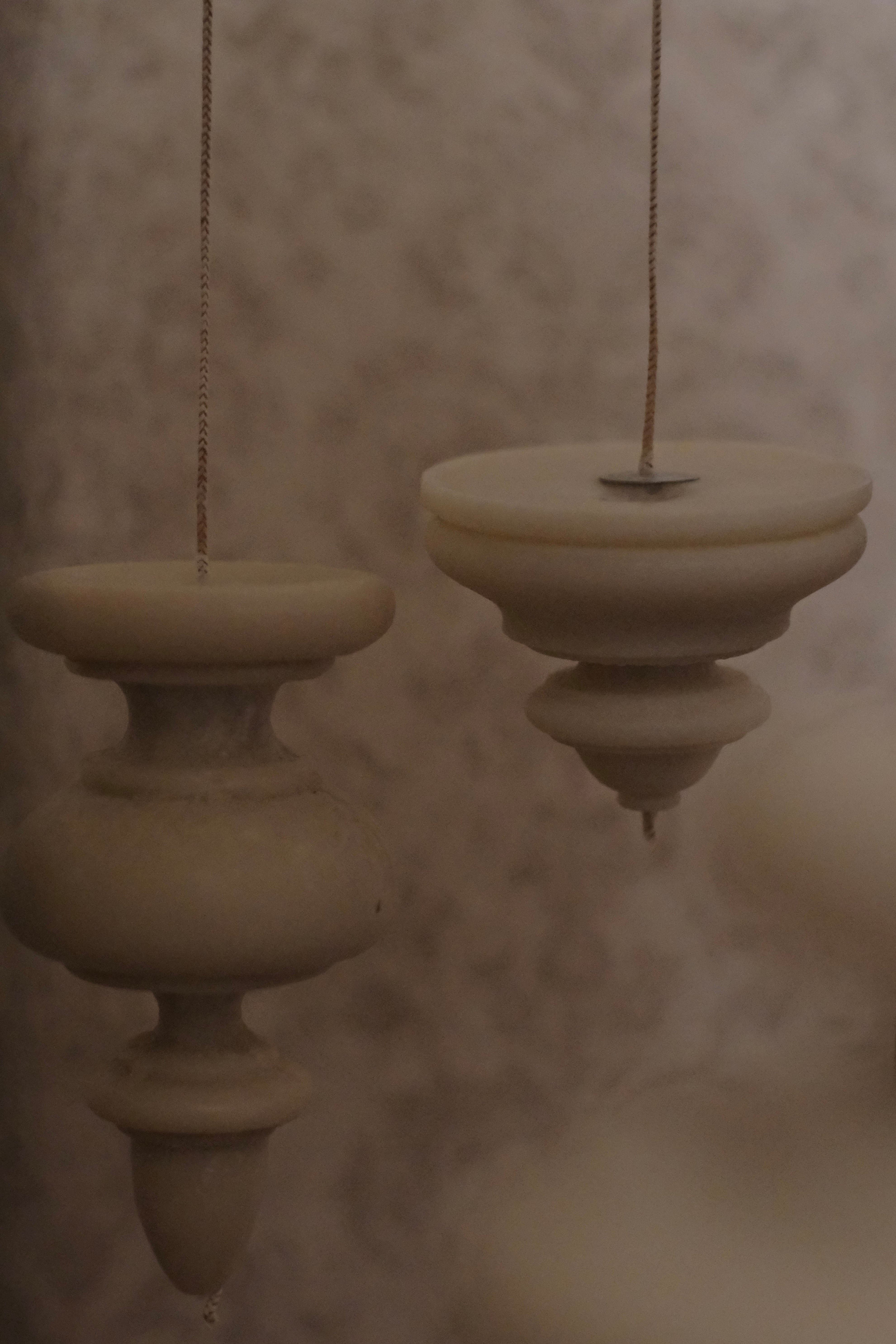 【灯】灯す時は、糸の長い方を下にするか、切り落として耐熱性の器の上でしっかり安定させて灯して下さい