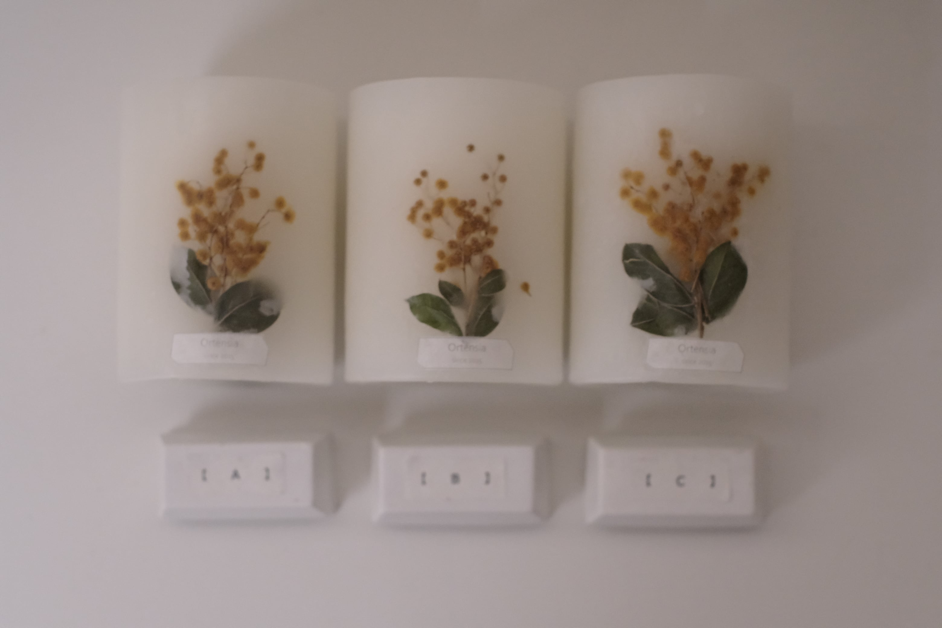 ボタニカルキャンドルは2層の造りになっており、燃焼部となる中心層にはソイワックスを使用しております。