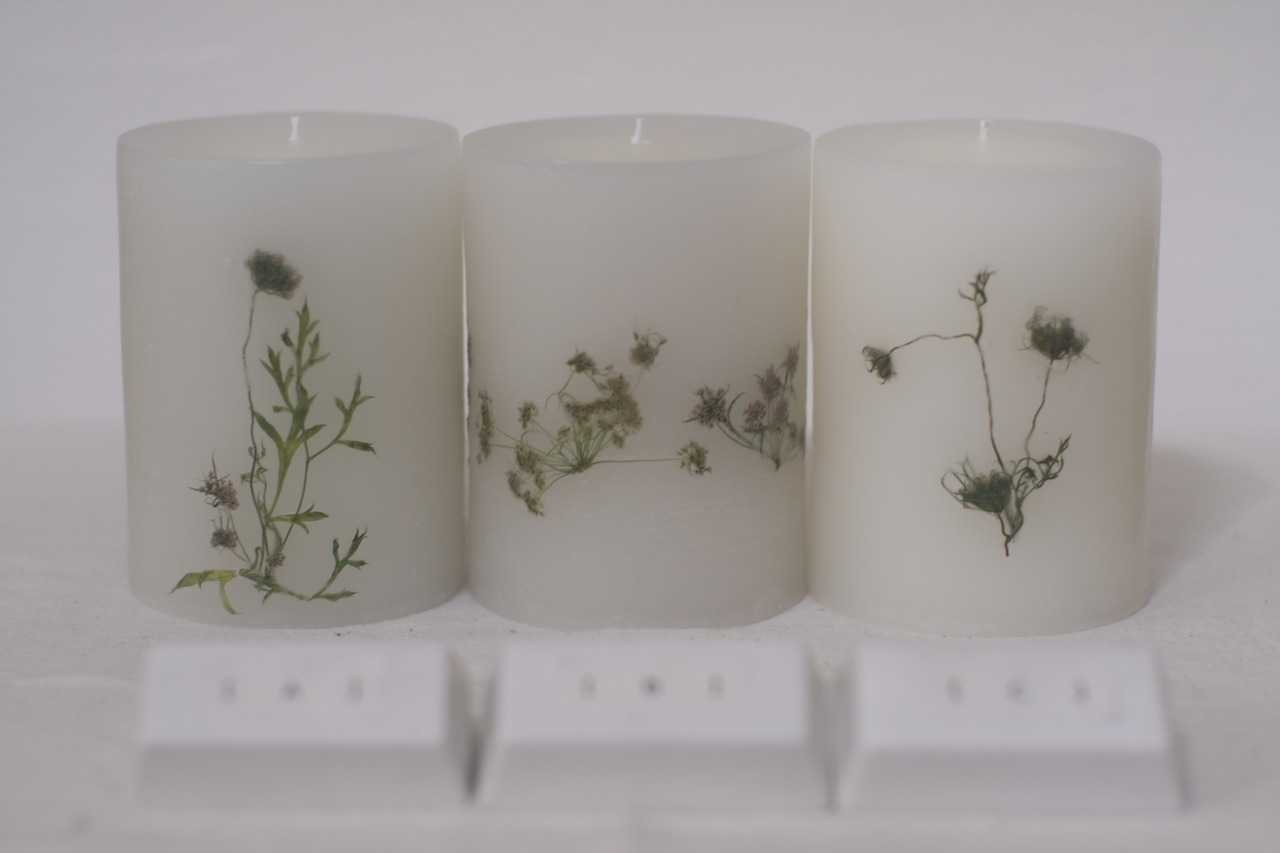 ボタニカルキャンドルは2層の造りになっており、燃焼部となる中心層にはソイワックスを使用しております。