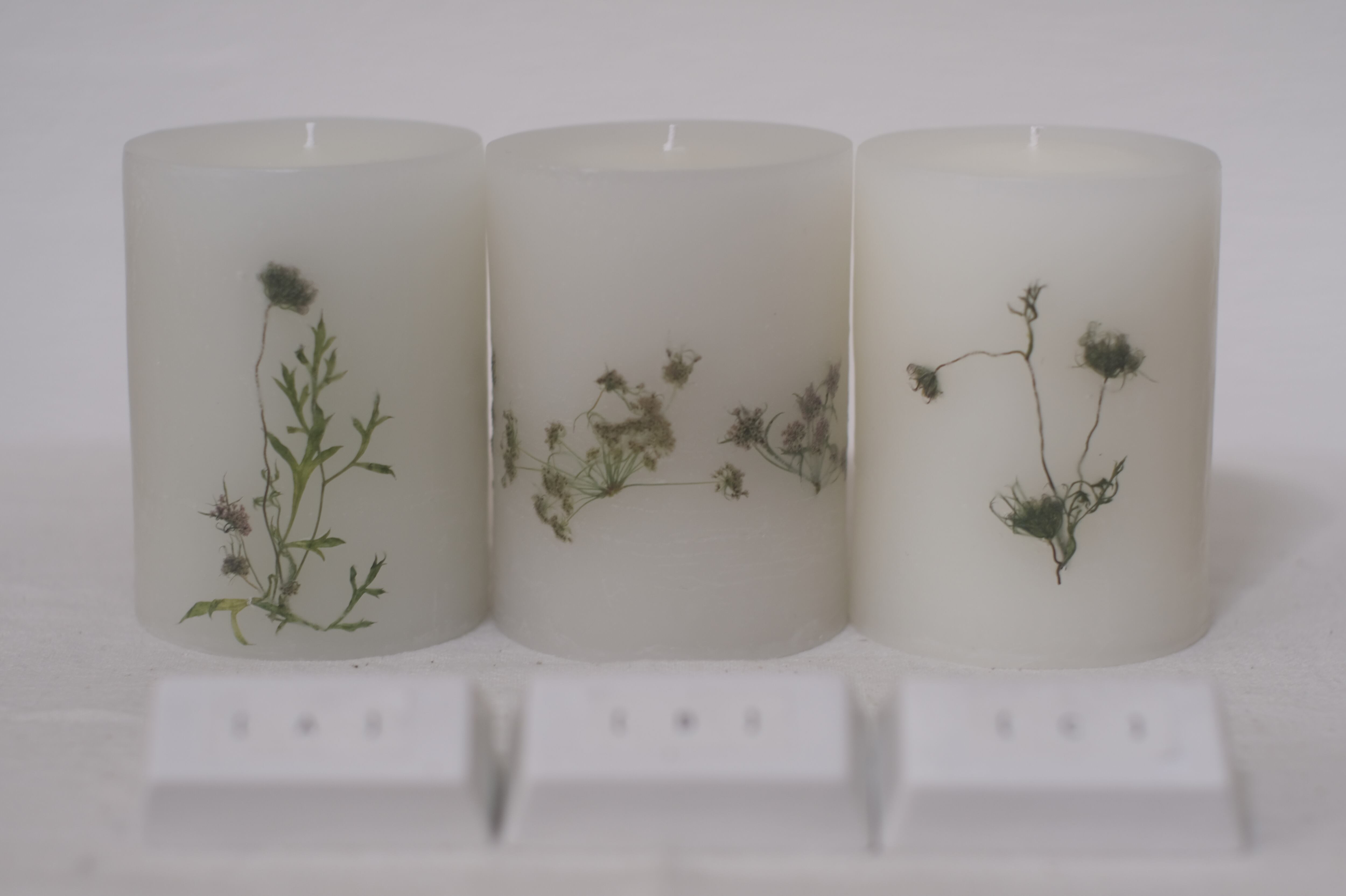 火を灯しても外側に溶け落ちず、ランタンのように中心層だけが溶けゆくよう設計しております。